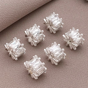 T896-3x6mm孔2mm铜镀厚银强保色六面桂花锆石隔珠-0.4g
