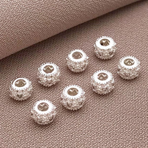 T864-8X11mm铜镀厚银强保色腰鼓珠小蛮腰凤阳花鼓转运珠隔珠-1.55g
