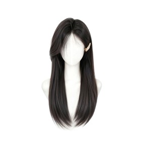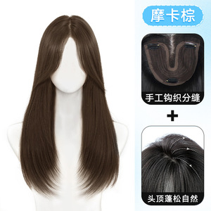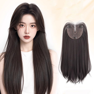 女性用手編みウィッグ、ヘアネットなし、軽くて薄い、頭頂部の増毛、ヘアシームカバー、黒のロングストレートインビジブルヘアピース