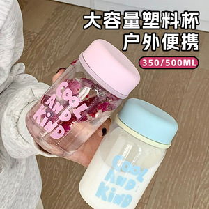 シンプルな漫画のかわいいプラスチックカップ屋外ポータブル男女学生直接飲料水カップ高温耐性と落下耐性カップ卸売