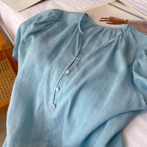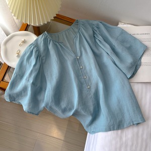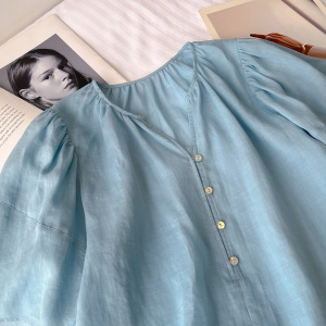 女性用フレンチライトで優しいリネンシャツ、夏用無地リネンシャツ、怠惰で年齢を軽減するコットンとリネンのシャツトップ