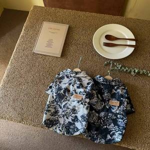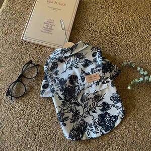 日本の白いレトロな花柄シャツ