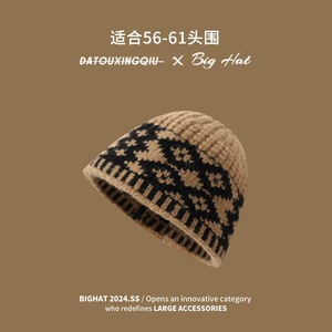 秋と冬の女性用フィッシャーマンニット帽、耳保護フライトハット、暖かく多用途、スキー、大きな頭囲、顔が見える小さなウールの帽子