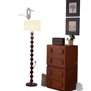 リビングルームのソファの横にあるフランスの中世のフロアランプ、わびさびスタイルのレトロな雰囲気のランプ、ウォールナット色の寝室の垂直テーブルランプ