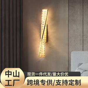 モダンライト高級クリスタルリビングルームテレビ背景壁ホテルロビー廊下装飾ゴールデンランプ寝室のベッドサイドウォールランプ