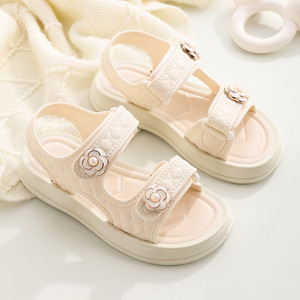 2025年新作夏女の子サンダル滑り止めマジックテープ学生シンプルスポーツカジュアルソフト底女の子靴