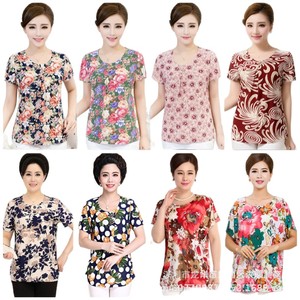ママ半袖 Tシャツレディース新作 2025 夏服レディースアイスシルク半袖 Tシャツシャツ中高年カジュアルトップス