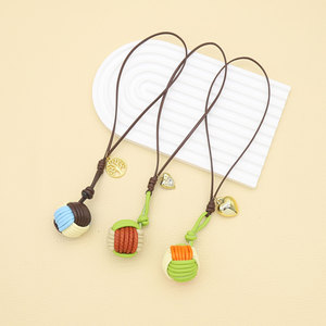 Iu系衝突色マカロン純手編みPU革紐球形キーホルダー携帯ストラップ
