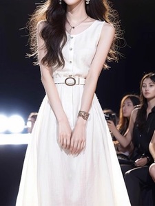 2025新型小香風フランス気質絶美超美しいピンクのノースリーブワンピース女性夏a字スカート