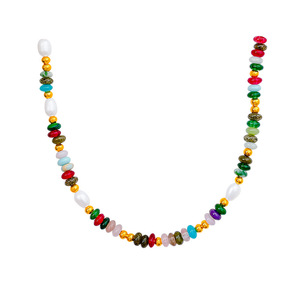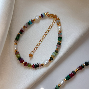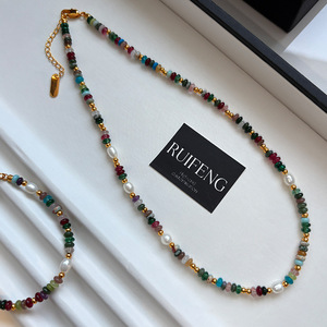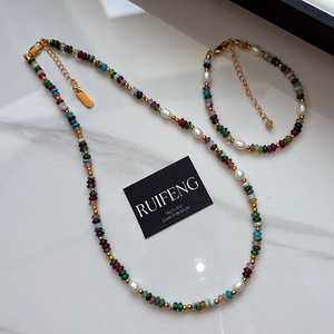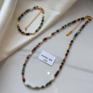 彩色多巴胺碧玺宝石水晶串珠彩虹珍珠项链夏天配饰女叠戴锁骨颈链