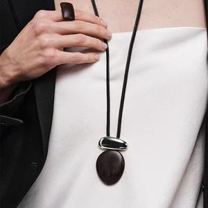 新しい天然黒檀シルバーメタルスプライシングレザーネックレス女性のライト高級ニッチハイエンド調節可能なロングネックレス