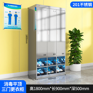 304ステンレス鋼の傾斜天井更衣室、無塵無菌浄化工場、紫外線消毒収納キャビネット、従業員用靴箱