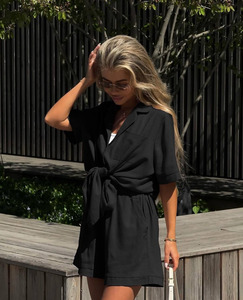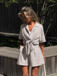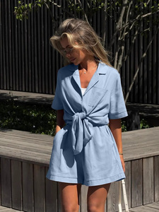 2025夏の欧米風アマゾンクロスボーダー婦人服折り襟付半袖ショーツファッションカジュアルスーツ女性