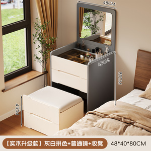 【無垢材アップグレードモデル】グレーとホワイトの配色 48*40*80 【3色スマートミラー+メイクスツール】