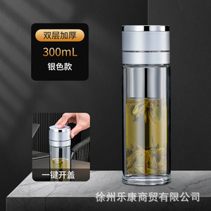 ワンクリックオープングラス二重厚さ男性断熱パーマ防止カップ耐高温ビジネス車載カップ