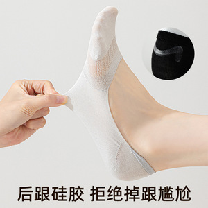 マルベリーシルクソックス、レディースボートソックス、夏用薄手インビジブル浅口ソックス、滑り止め、脱落防止、吸汗性、通気性のあるレディースソックス