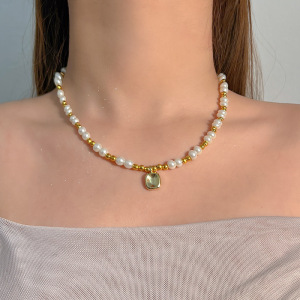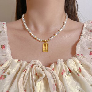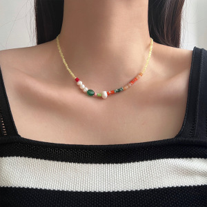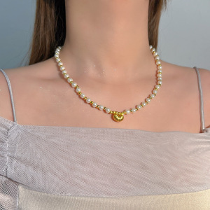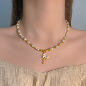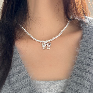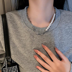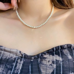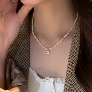 Shijia パールネックレスレディースニッチライトラグジュアリーデザインハイエンドファッション気質鎖骨チェーンネックレスセーターチェーンビーズチェーン