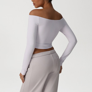 ヨーロッパとアメリカのクロスボーダー skims ヨガウェア長袖ワンショルダートップ長袖 Tシャツ高弾性フィットネススポーツボディシェイピング Tシャツ
