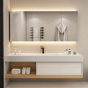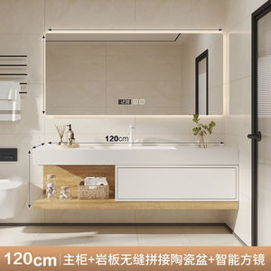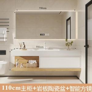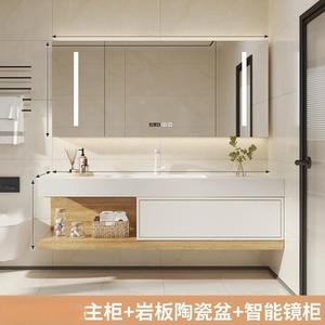 现代实木岩板陶瓷无缝盆浴室柜组合卫生间洗漱洗手洗脸池智能卫浴