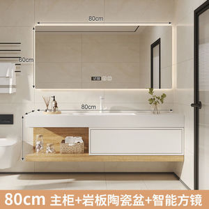 智能镜柜+岩板陶瓷盆-80CM【多重储物】