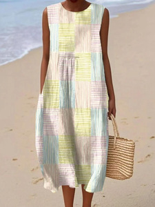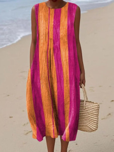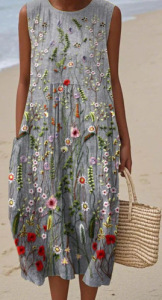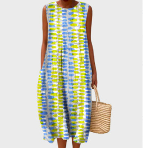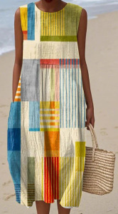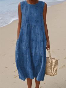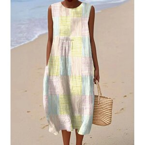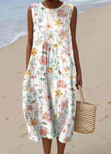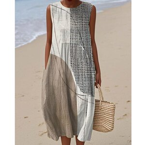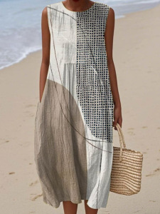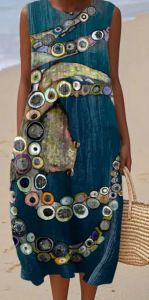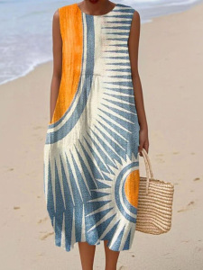 クロスボーダー新しいアマゾン独立ステーション 3D プリントラウンドネックプルオーバーファッショナブルな人気の女性の夏のノースリーブドレス