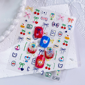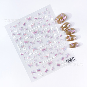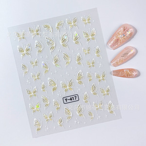 グラデーションスマッジフレンチマニキュアステッカー 5d エンボスガラス蝶花落書きネイルステッカー立体粘着