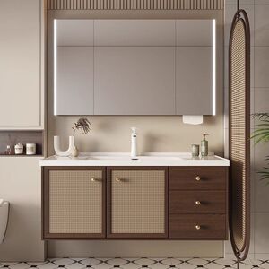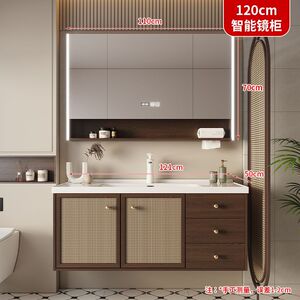 陶瓷一体盆【智能半储物镜柜】-1.2米可定制