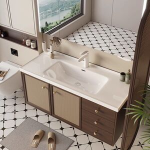 古风复古橡木浴室柜陶瓷一体洗漱洗手盆洗脸盆洗脸卫生间