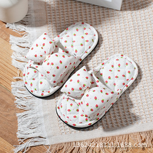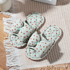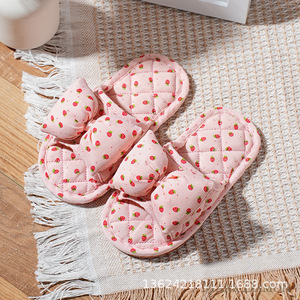 子供用布製スリッパ、四季通用、家庭用、屋内用、滑り止め、小さなイチゴ、木製床、静音、布底、柔らかい底、滑り止め