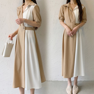 クロスボーダーアマゾンリアルショット韓国チックフレンチニッチラペルデザインコントラストカラーステッチワンボタンウエスト