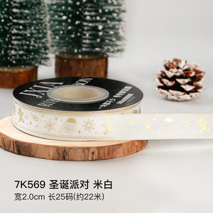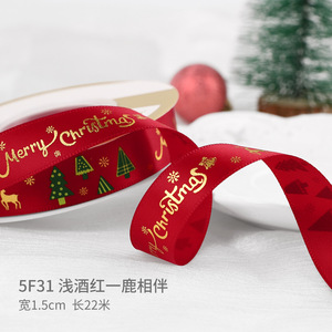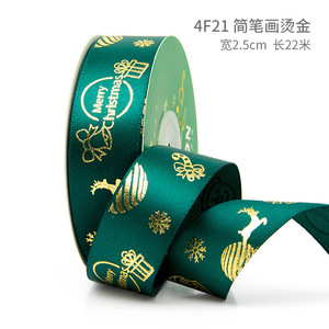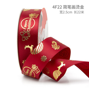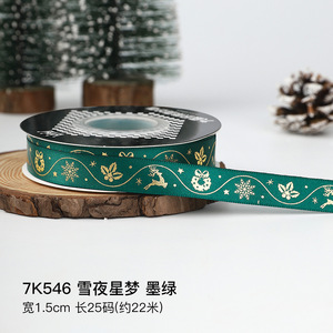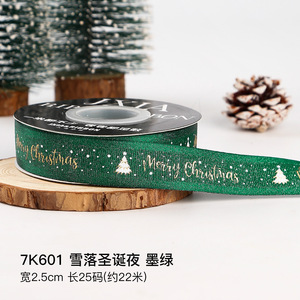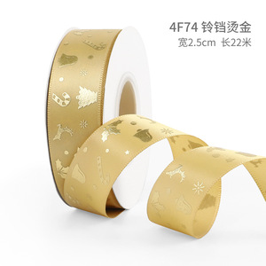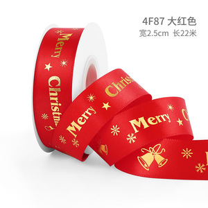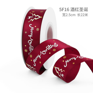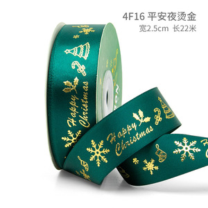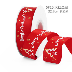 クリスマスリボン、ホットスタンプ加工ポリエステルサテンリボン、ホリデーデコレーション、ギフトボックス包装用リボン、越境専用販売、在庫あり