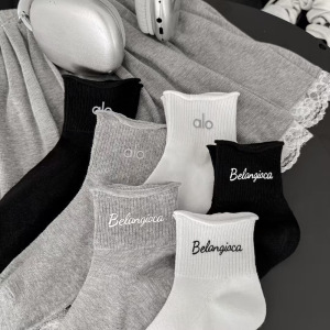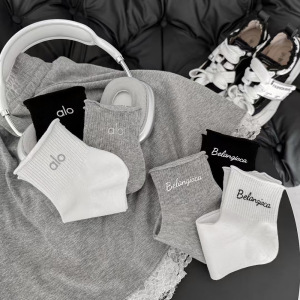 2025 ソックス女性の春夏韓国イン英語文字ホットスタンプメッシュ綿の靴下薄いカジュアルヨーロッパ高品質