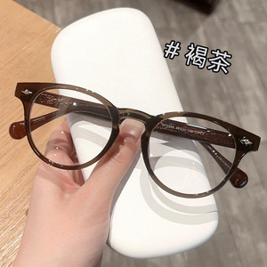 日本製無地小フレームレトロ茶色メガネフレーム卸売女性用高級感とブルーライトカットメガネフレームを組み合わせることができます