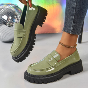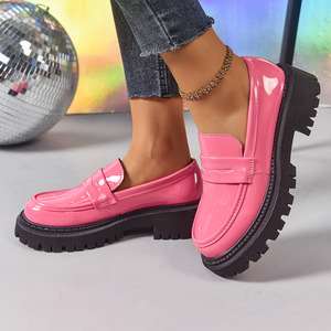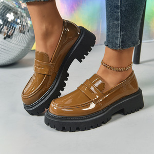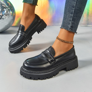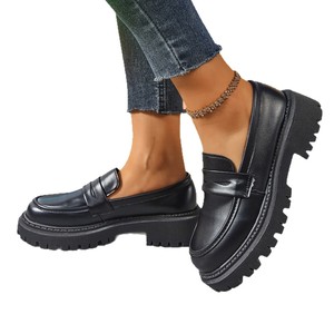 クロスボーダー対外貿易大きいサイズの女性用ローファー新しい英国スタイルのラウンドトゥ多用途スリッポン日本製厚底の小さな革靴女性用