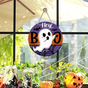 ハロウィンゴーストサインフロントドア装飾ゴーストクモの巣コウモリハロウィンハンギングパーティー装飾