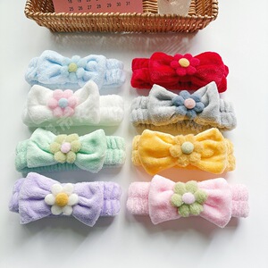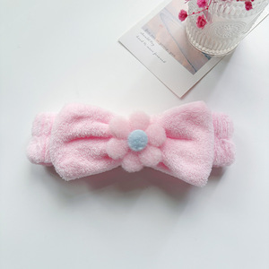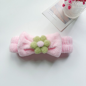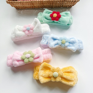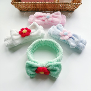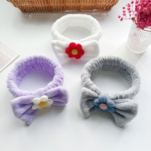 日本と韓国の新しいスタイルの小さな花と蝶のヘアバンド女性の洗顔とメイクアップスポーツ吸収性フランネルヘッドバンドヘアアクセサリーのソース