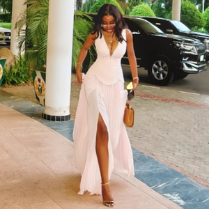 アフリカの女性のノースリーブベストチューブトップ白いドレス女性のヨーロッパとアメリカのハイエンドの気質エレガントなスリットロングスカート