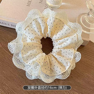 フレンチレトロな二層チェック柄レースの大きなヘアゴム、文学少女カレッジスタイルのヘアロープポニーテールヘッドロープ