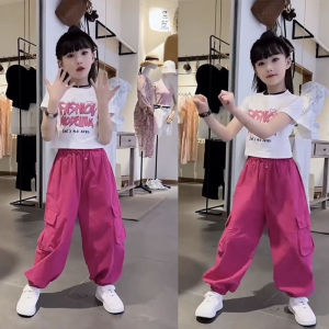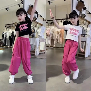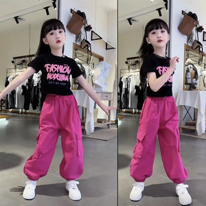 女童短袖工装裤两件套装网红炸街潮2025夏款时髦中大儿童T恤裤子