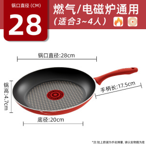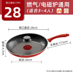 28CM ファイヤーレッドスポットフライパン + [カスタマイズされたガラス蓋]