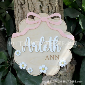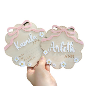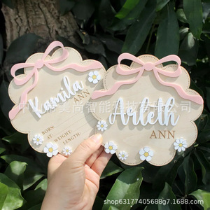 国境を越えた売れ筋ピンクのリボンコケットベビー名札赤ちゃん誕生フラワーカードベビーシャワーのギフト