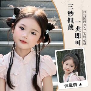 儿童假发马尾辫抓夹丸子头女童汉服古风发髻新中式麻花编发假发包