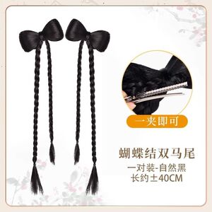 蝴蝶结双麻花辫【自然黑】一对装