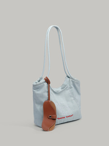 韩系小狗牛仔帆布包包女小众刺绣字母设计大容量托特包手提单肩包