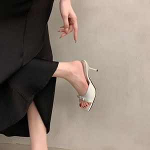 フレンチスタイルの黒のリボンハイヒールの女性のための 2025 夏の新しい多用途スティレットヒールミュールサンダル