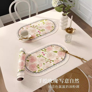 アメリカンスタイルの楕円形PVCプレースマット、ホテル、レストラン、革製洋食プレースマット、耐油・断熱マット、家庭用、0.8mm