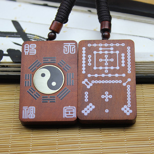 天然雷撃ナツメ材スプレー塗装川図羅書ペンダントペンダントポータブル木製看板太極拳八卦回転純粋な手作り