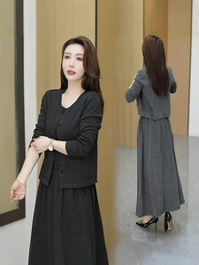 2025春新作スーツスカートレディース高級韓国風ニットカーディガンサスペンダースカート3点セット
