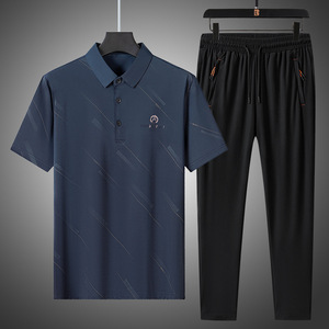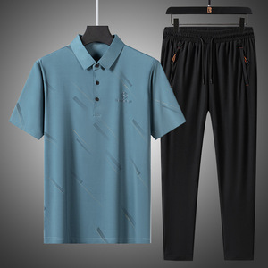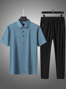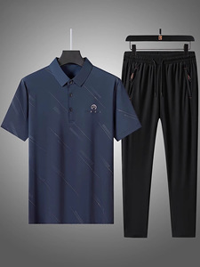 キツツキお父さん夏アイスシルク速乾半袖スーツ中年男性カジュアル新作夏Tシャツ2枚セット