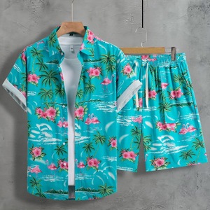 2024 夏半袖花柄シャツスーツクロスボーダーホットセールハワイアンスタイルルーズツーピースセット + カジュアルショーツトレンディ